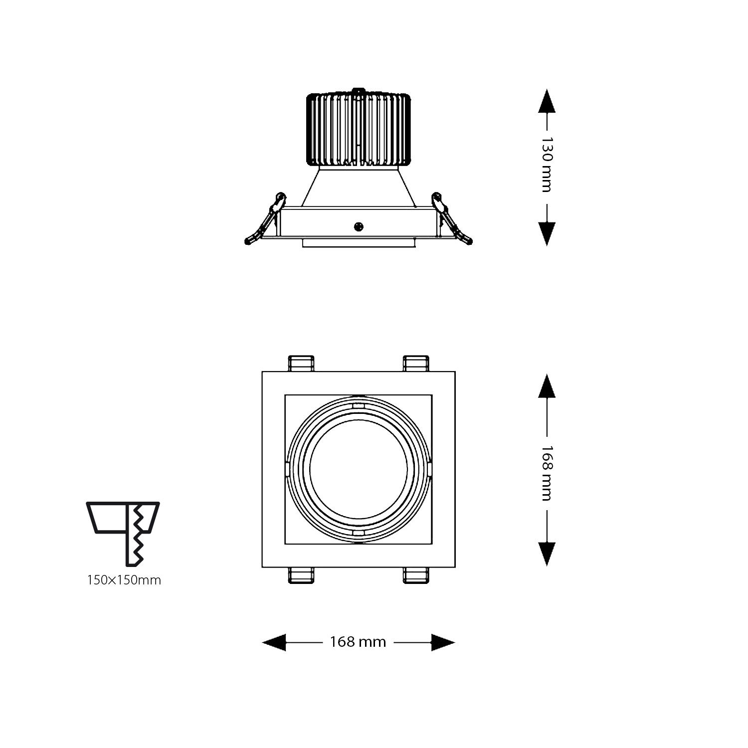 - Maße der Leuchte: 168 x168x130mm; DA 150 x 150mm