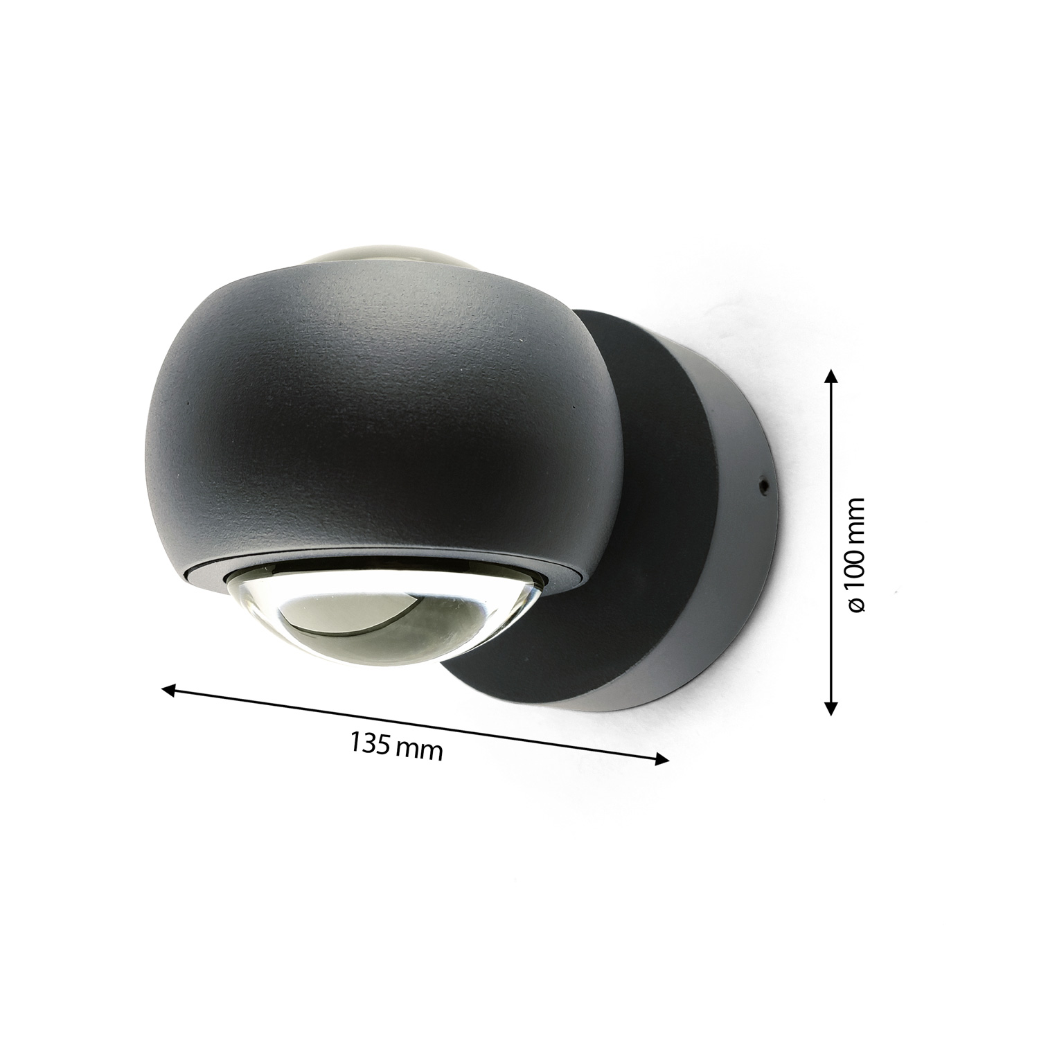 Wall-Duo ist die elegante LED-Wandleuchte mit zwei Lichtquellen und Linsen-Effekt fuer präzise, beidseitige Akzente an Fassade und Flur. Die Lichtfarbe laesst sich per DIP-Schalter auf 2700K, 3000K oder 4000K einstellen. IP54 schuetzt zuverlaessig im Innen- und Aussenbereich. Robustes Aluminium mit gehaertetem Glas, pflegeleicht und langlebig.